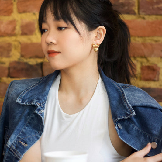 Heart & Bow Earrings - Gold