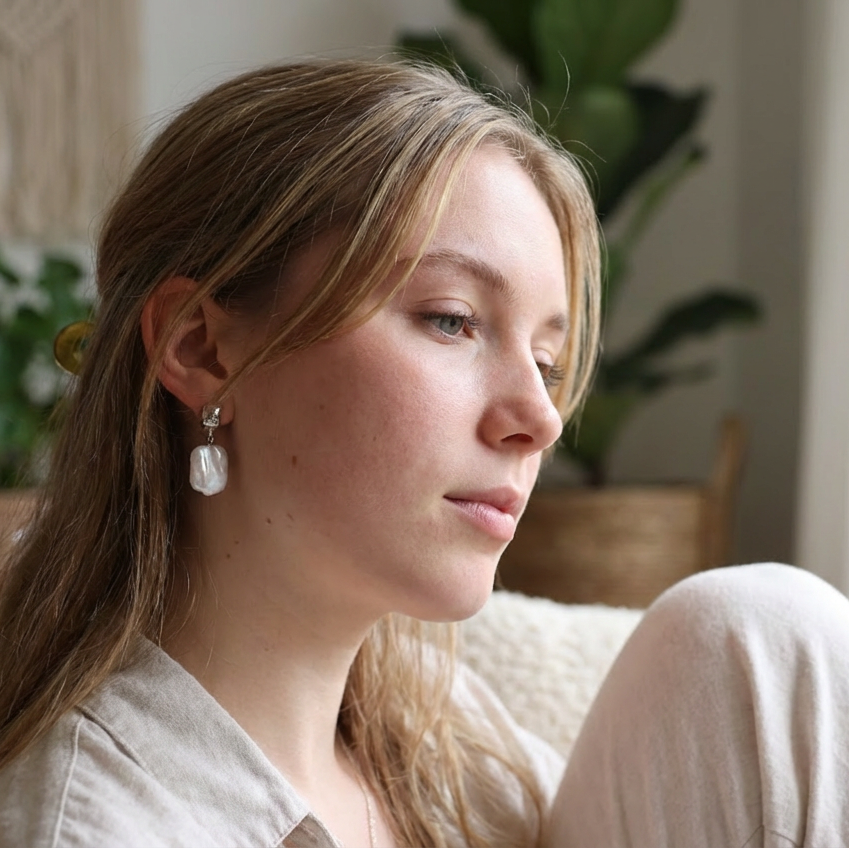 Moonlit Square Earrings with natural square baroque pearls and chunky silver. Bold, modern, timeless statement jewelry gift celebrating individuality and elegance